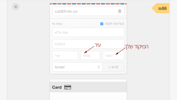 אם אתם רואים שדה ״דואר״ – הכוונה היא למיקוד שלכם