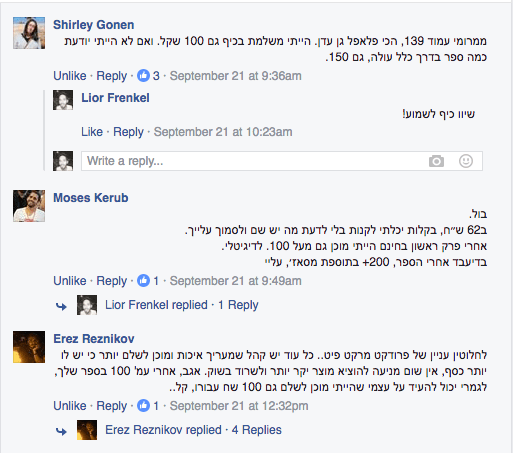 הבוקר שיתפתי את הפוסט בפייסבוק שלי. היה סופר-משמח לקבל עליו את התגובות הבאות. שמחתי לגלות שיש אנשים שמעדיפים את הפלאפל היקר, ועדיין מרגישים שהוא היה שווה להם יותר…