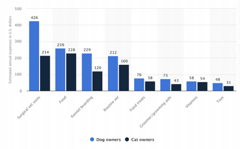 הרצת החיפוש "cat expenses״ (הוצאות על חתול), תוביל לגרף הבא, המלמד אותנו על מה בעלי חיות מחמד בארה״ב מוציאים כסף: