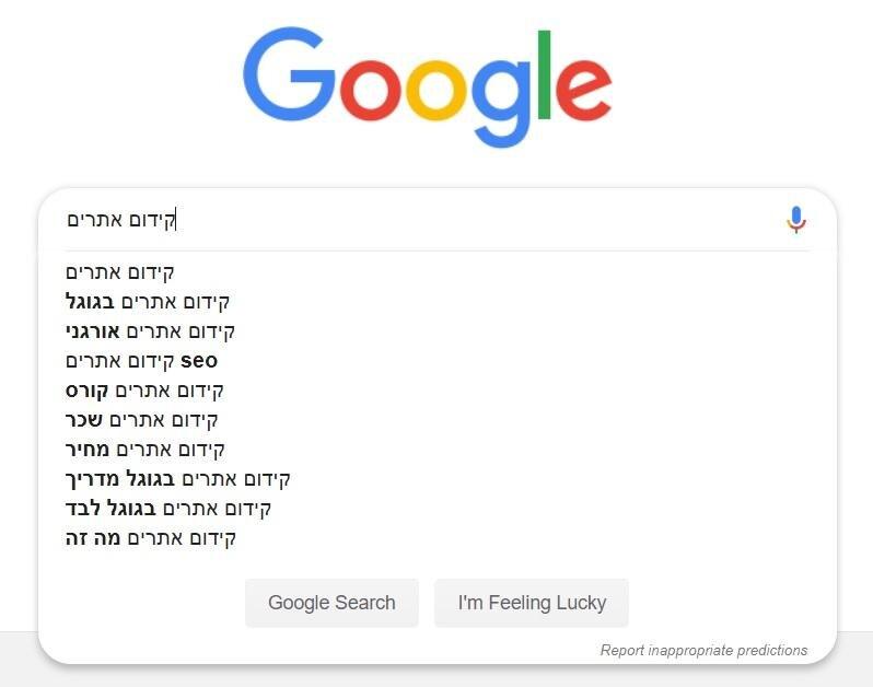 האתר הראשון שאני ממליץ לערוך בו את החיפוש הוא כמובן גוגל. היכנסו לגוגל והקלידו את שם הנושא שבחרתם, אל תלחצו אנטר, הביטו ברשימת האופציות שגוגל מציע לכם להשלמה שכן אם גוגל ממליץ לכם על מילת מפתח קשורה לנושא כנראה שיש כמות חיפושים טובה וגבוהה בתחום.