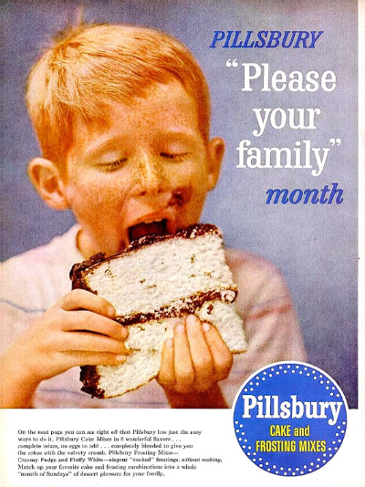 אז אריאלי מספר שלפני חמישים שנה פילסברי התחילו לייצר מיקסים של עוגות. הם היו משוכנעים שעקרות בית ימותו על זה. את מקבלת מיקס, מערבבת עם מים, ויוצאת לך עוגה. טה-דה!
