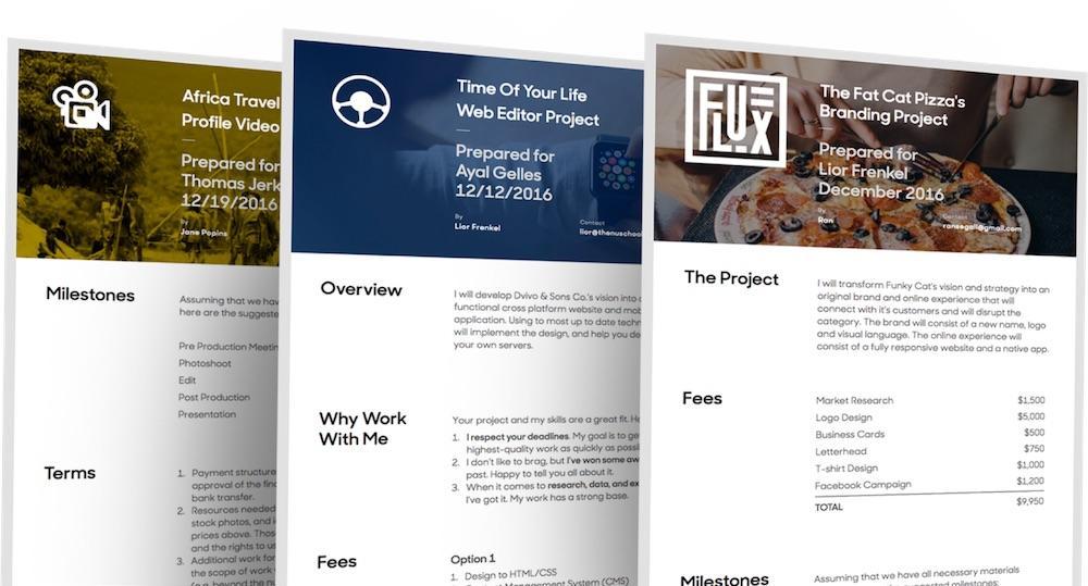 אחרי כמה ניסויים הרגשנו שעלינו על משהו, וככה נולד Prospero. פרוספרו הוא כלי (תוכנה) ליצירת הצעות מחיר לעצמאיים. לכתוב הצעת מחיר זה אחד הדברים הכי מעצבנים שאתה צריך לעשות בתור עצמאי – כאב ראש רציני. מכיוון שצברנו ניסיון מטורף בתחום החלטנו לבנות מוצר איתו אפשר לכתוב הצעת מחיר בדקות ספורות. לא רק זה, ההצעה יוצאת יפיפיה, ובמקום אימייל או PDF, היא בעצם עמוד אינטרנטי שהלקוח יכול לחתום עליו אונליין.