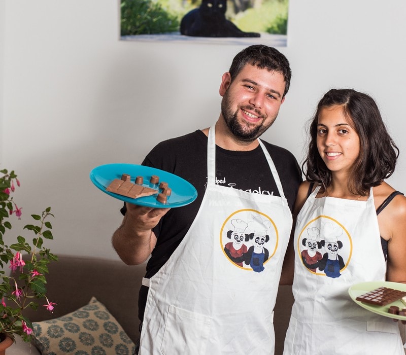 אבל כדי שתוכלו לקנות ולהתענג על השוקולד הזה – יש בדרך מיליון ברגים קטנים שצריך לחבר. וזה יכול להיות מעייף, קשה, מתסכל ולא רק ״כיף״ – תשאלו את חבר שלי – דניאל ברקת – שהקים עם זוגתו מותג שוקולד טבעוני בשם פנדה.