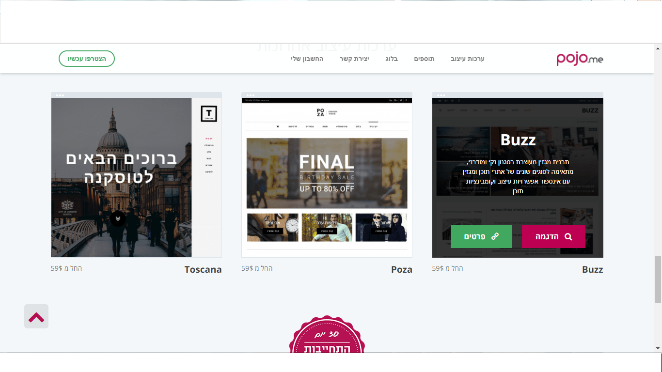 POJO –ניתן למצוא כ- 16 תבניות וורדפרס אשר מתאימות לבלוגים, אתרי תדמית, חנויות וירטואליות ומגזינים. מחירי רשיונות השימוש הם אחידים ועומדים על כ – 59$ לתבנית בודדת.